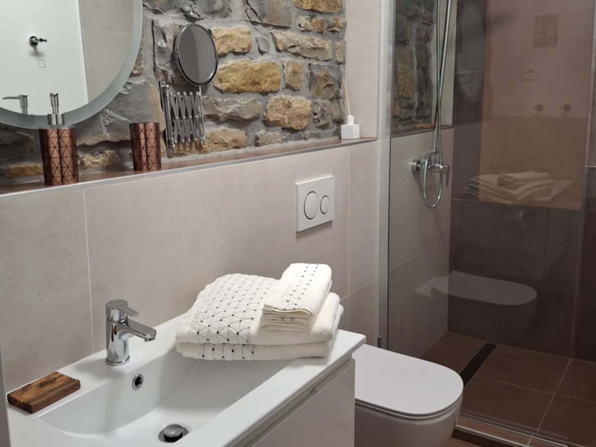 Koupelna se sprchou je vybavena ručníky, mýdlem, fénem.